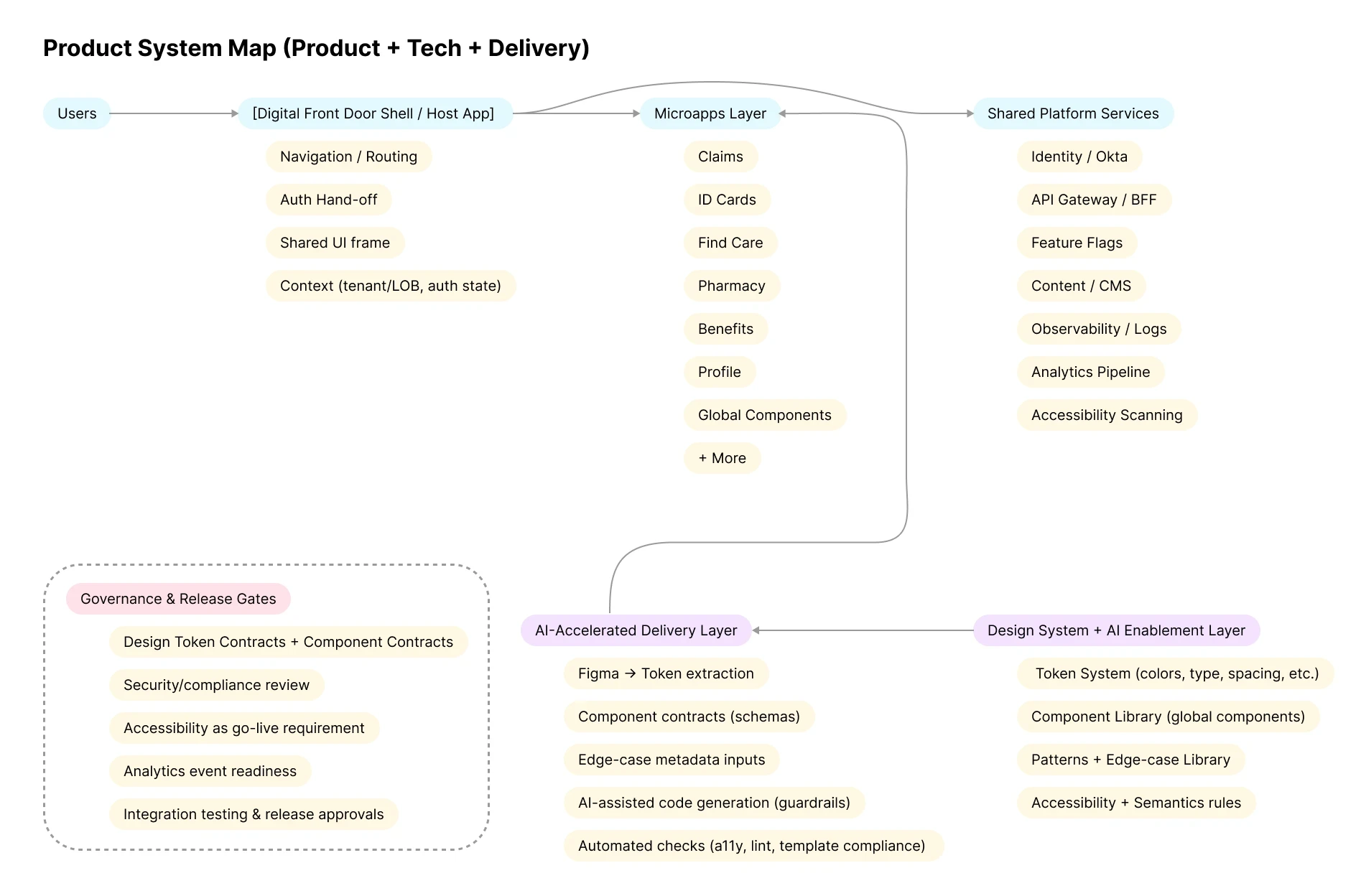 Execution focused on translating the platform strategy into scalable, actionable patterns that teams could adopt across the member portal. This required coordinating multiple teams, introducing new workflows, and establishing structures that supported both modernization and future AI-driven development.